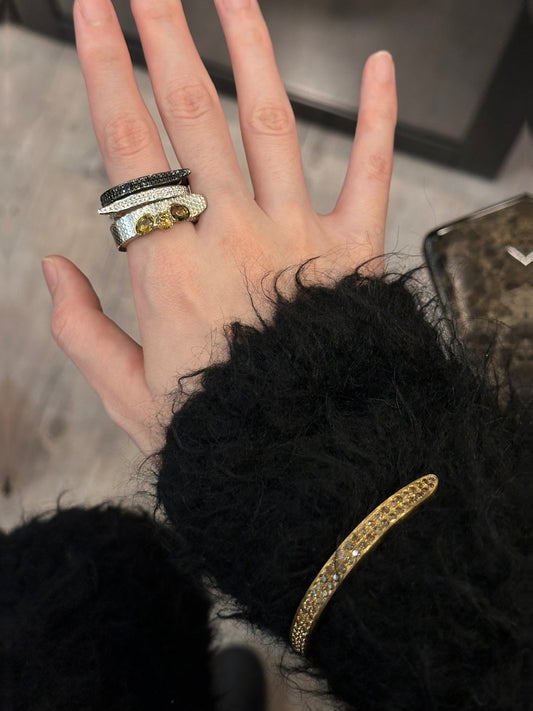 The Chessboard Series features everyday 18k gold pieces, with a few silver-accented...