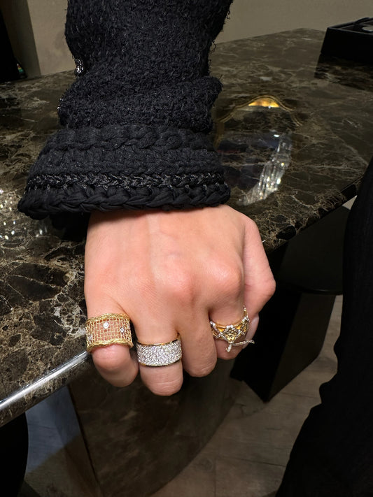 The Chessboard Series features everyday 18k gold pieces, with a few silver-accented...