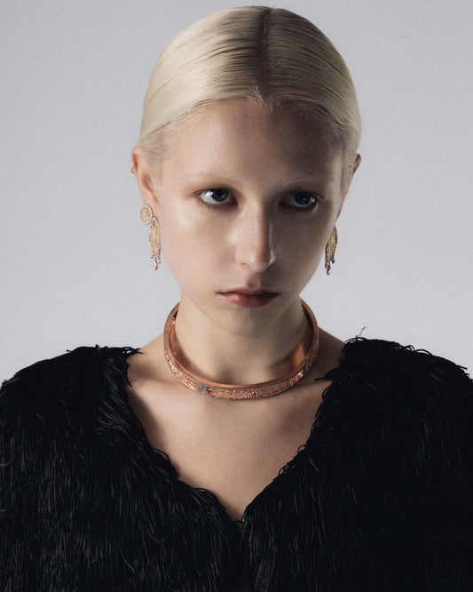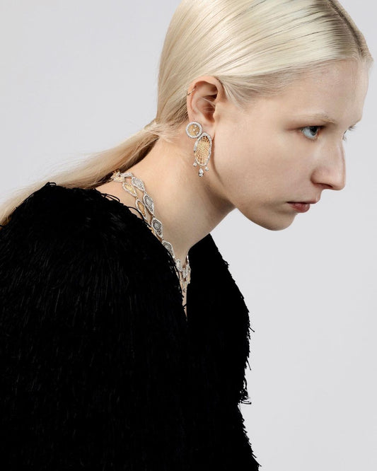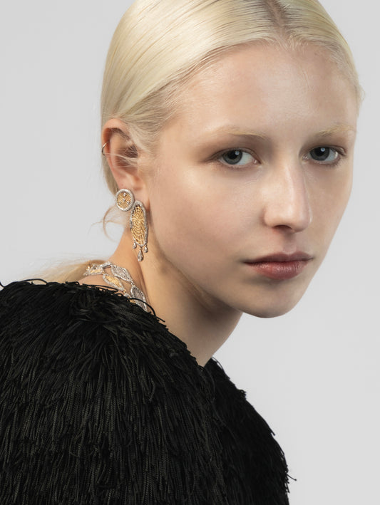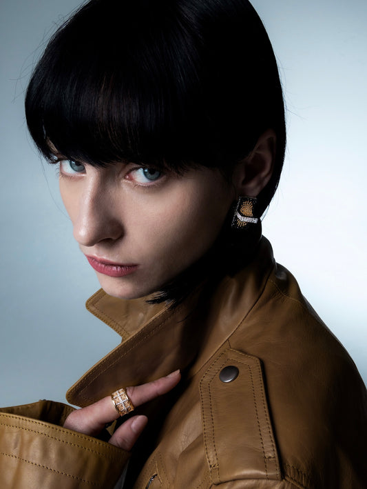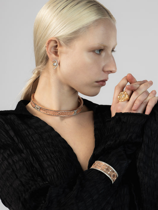 棋盘系列以日常 18k 金饰品为主,并有少量银质设计。该系列的灵感来自蜘蛛网,将蜘蛛描绘成自然界中的棋手,织出的网形似精心制作的棋盘,随时准备捕捉猎物。在许多文化中,蜘蛛被视为财富的象征,人们相信它们的网能招财进宝,象征着上天的祝福。